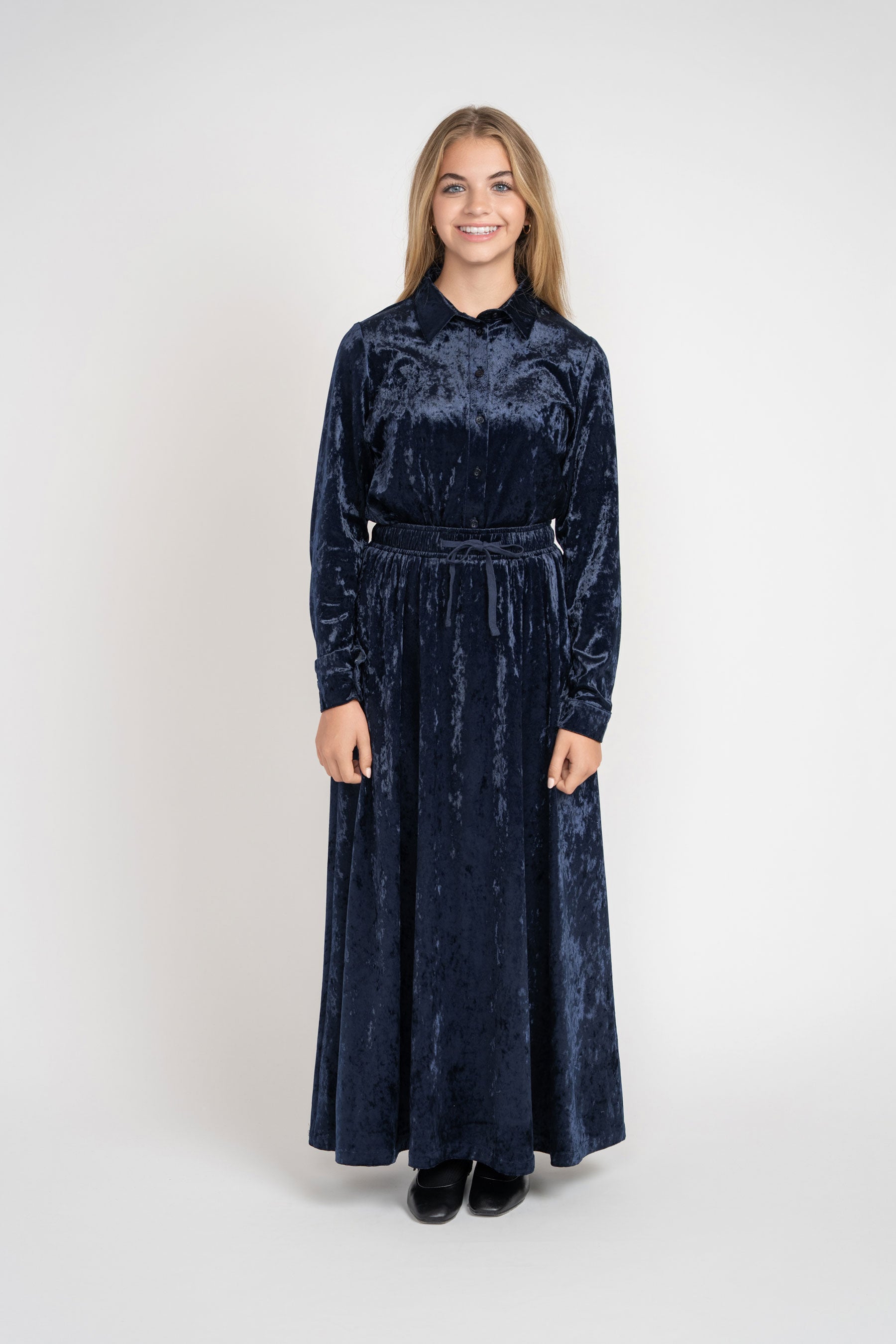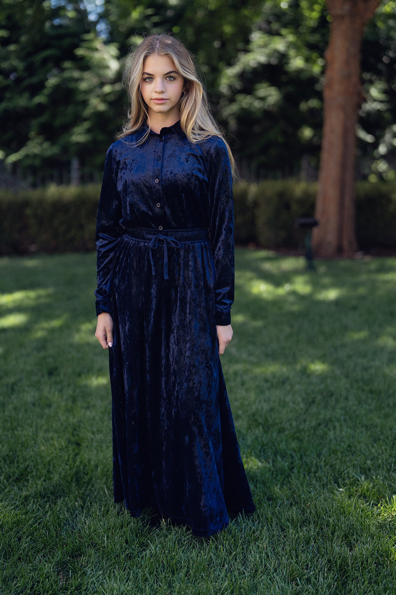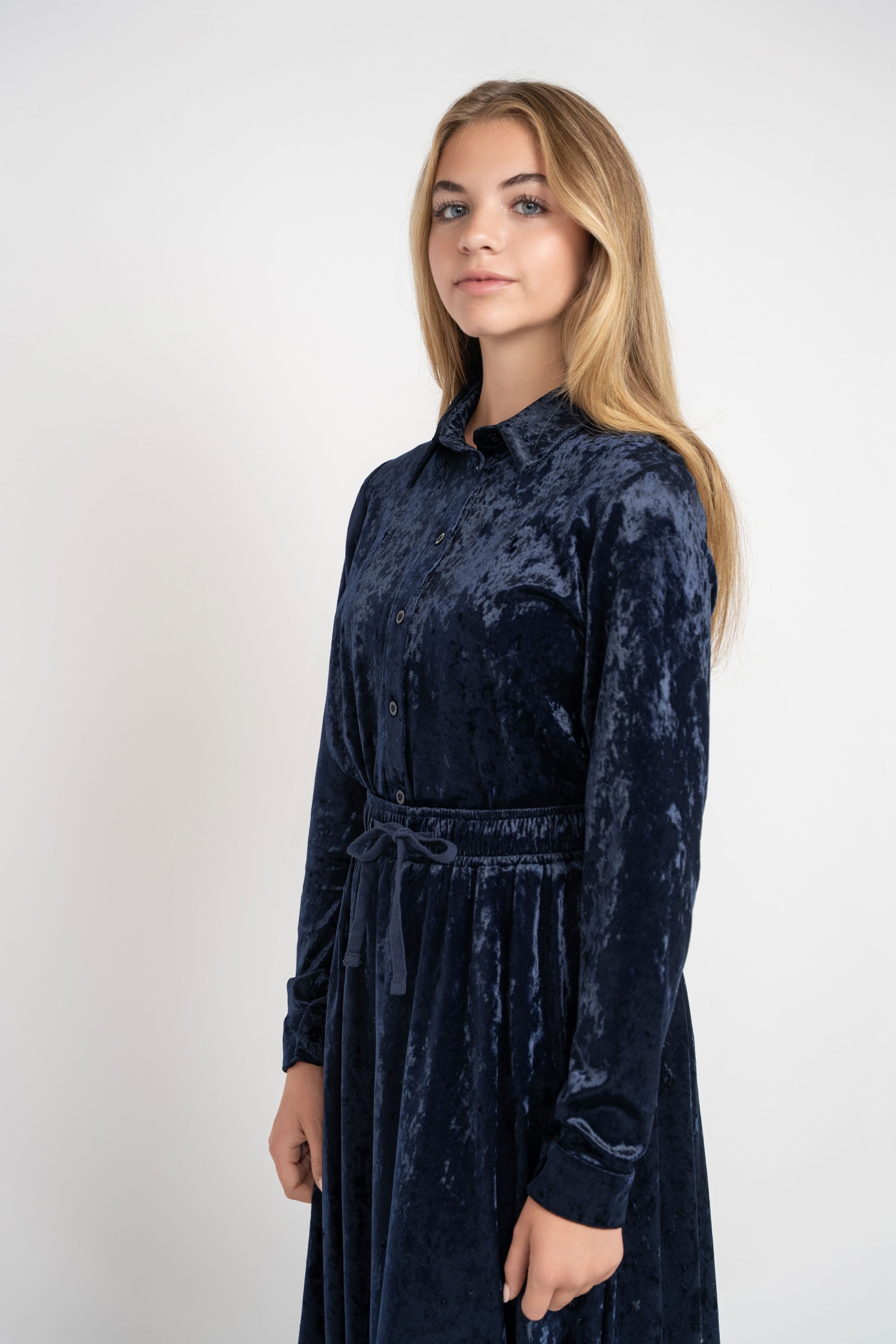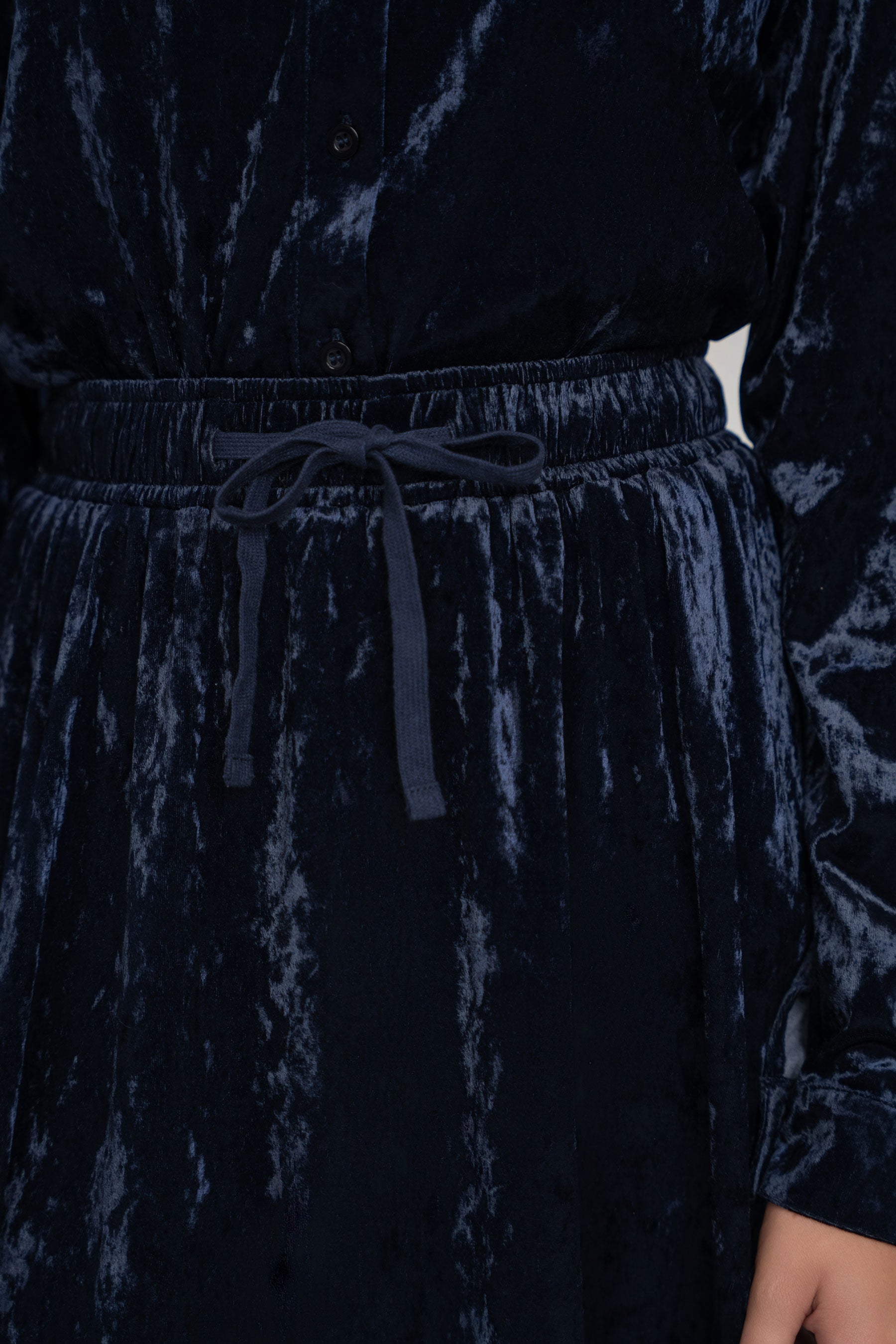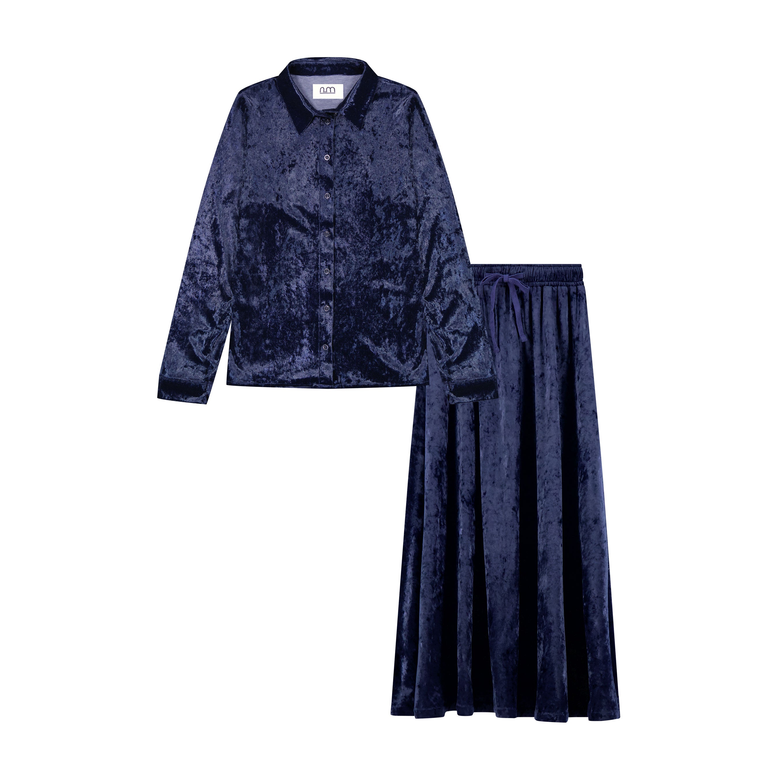Experience refined comfort with the Crushed Velvet Button Down Set in Navy. Crafted from luxuriously soft crushed velvet, this set offers a smooth, elegant texture that drapes gracefully. The button-down design adds a timeless touch, perfect for stylish lounging or casual outings. Its rich navy hue complements any wardrobe, providing a versatile yet sophisticated look. Ideal for those seeking both comfort and understated elegance in their everyday wear.