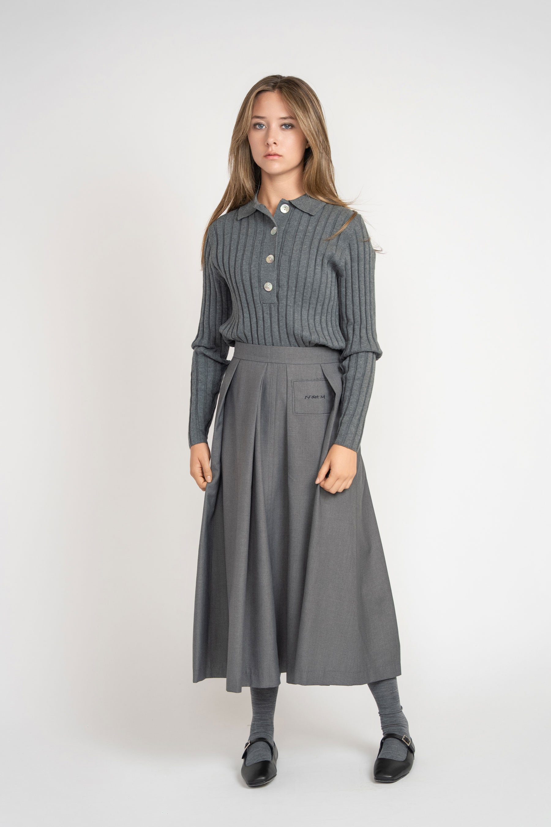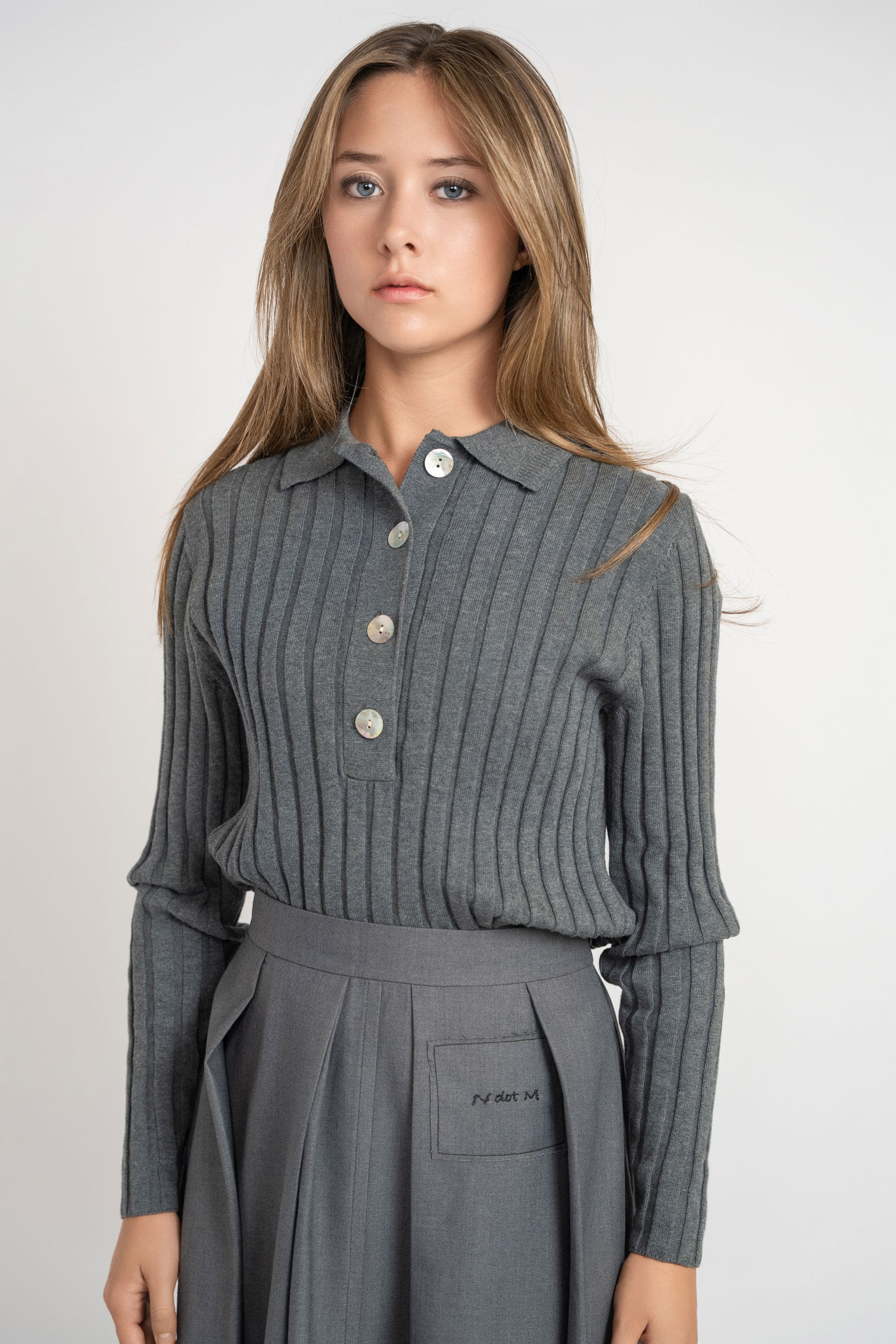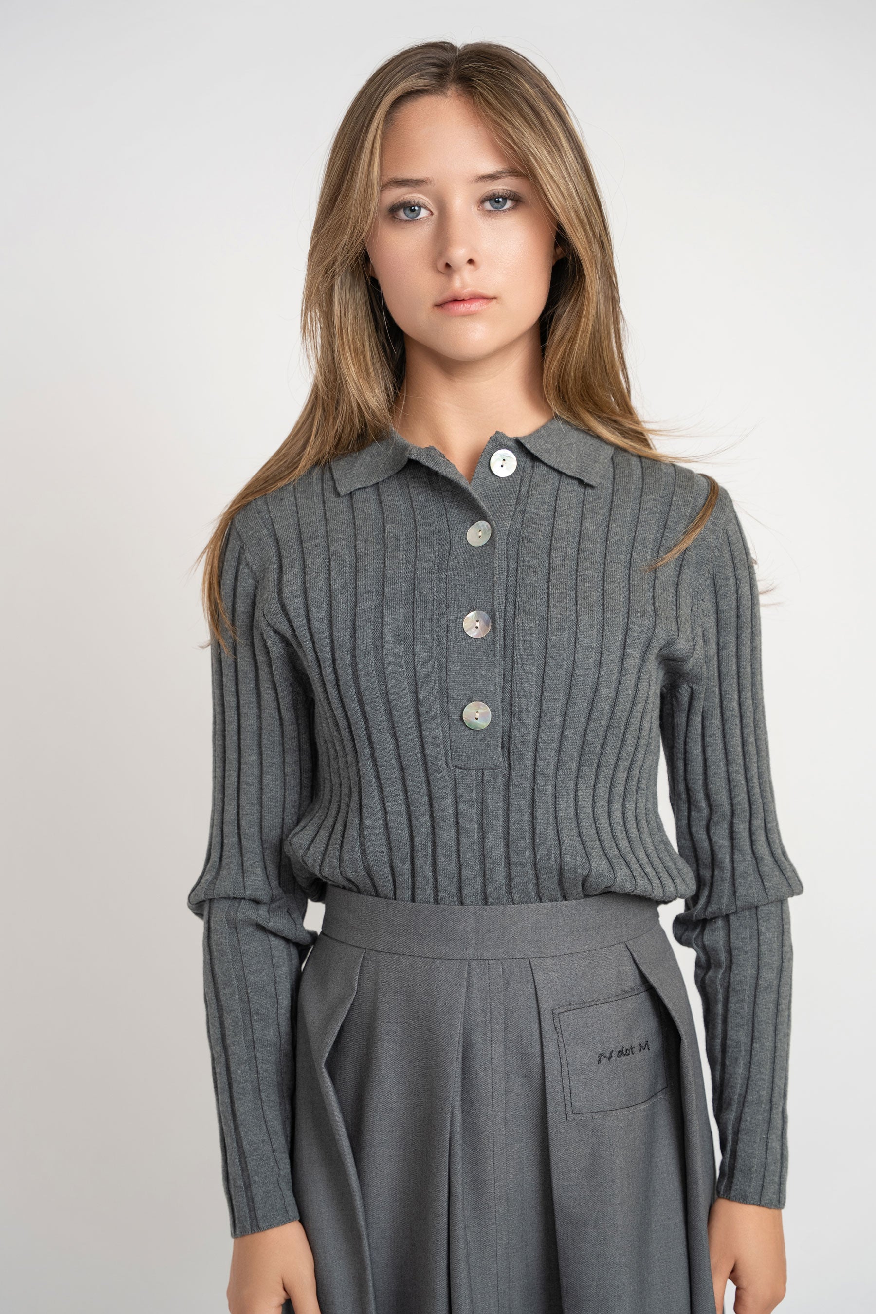 Elevate your wardrobe with the Ribbed Polo Sweater in Grey, designed for timeless sophistication. Crafted with a refined ribbed texture, this sweater offers both comfort and a polished silhouette. Perfect for layering or wearing on its own, it effortlessly blends casual ease with elegant style, making it an essential piece for a modern, versatile look.