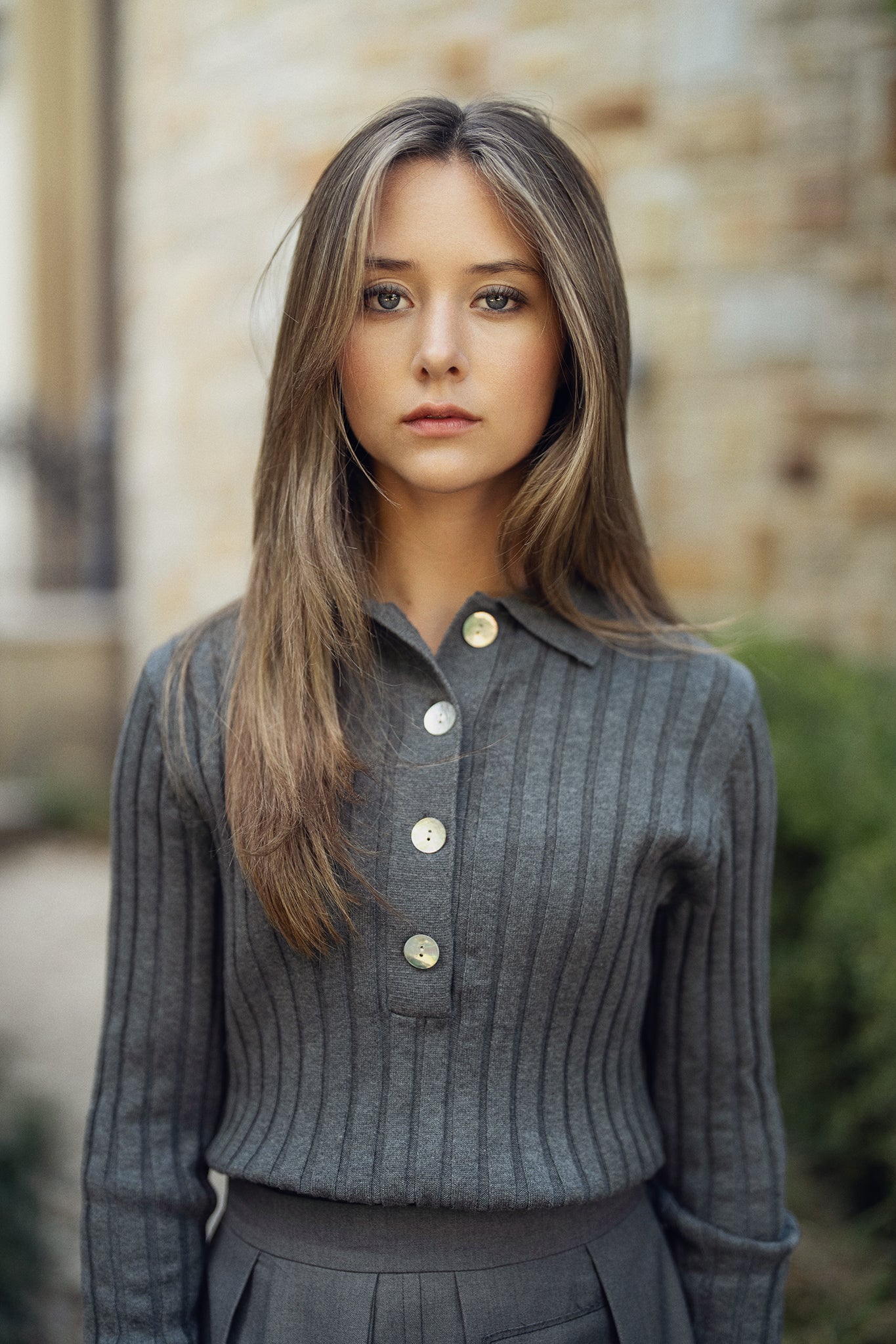 Ribbed Polo Sweater - Grey