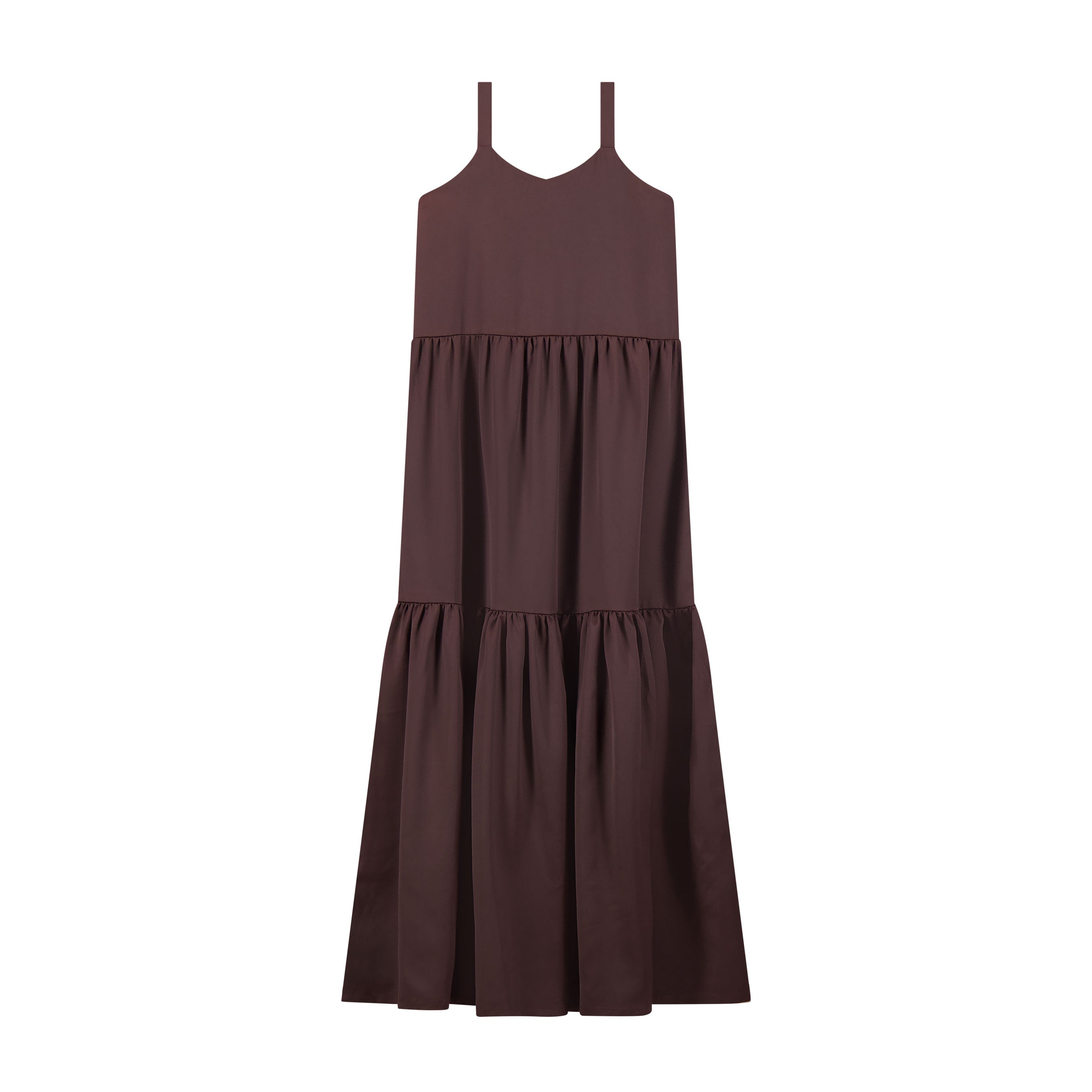 Elevate your wardrobe with this sophisticated brown slip dress, designed for effortless elegance. Its smooth, flowing fabric drapes beautifully, enhancing your silhouette while offering comfort. Perfect for layering or wearing alone, this versatile piece transitions seamlessly from day to night, embodying refined simplicity and timeless style.