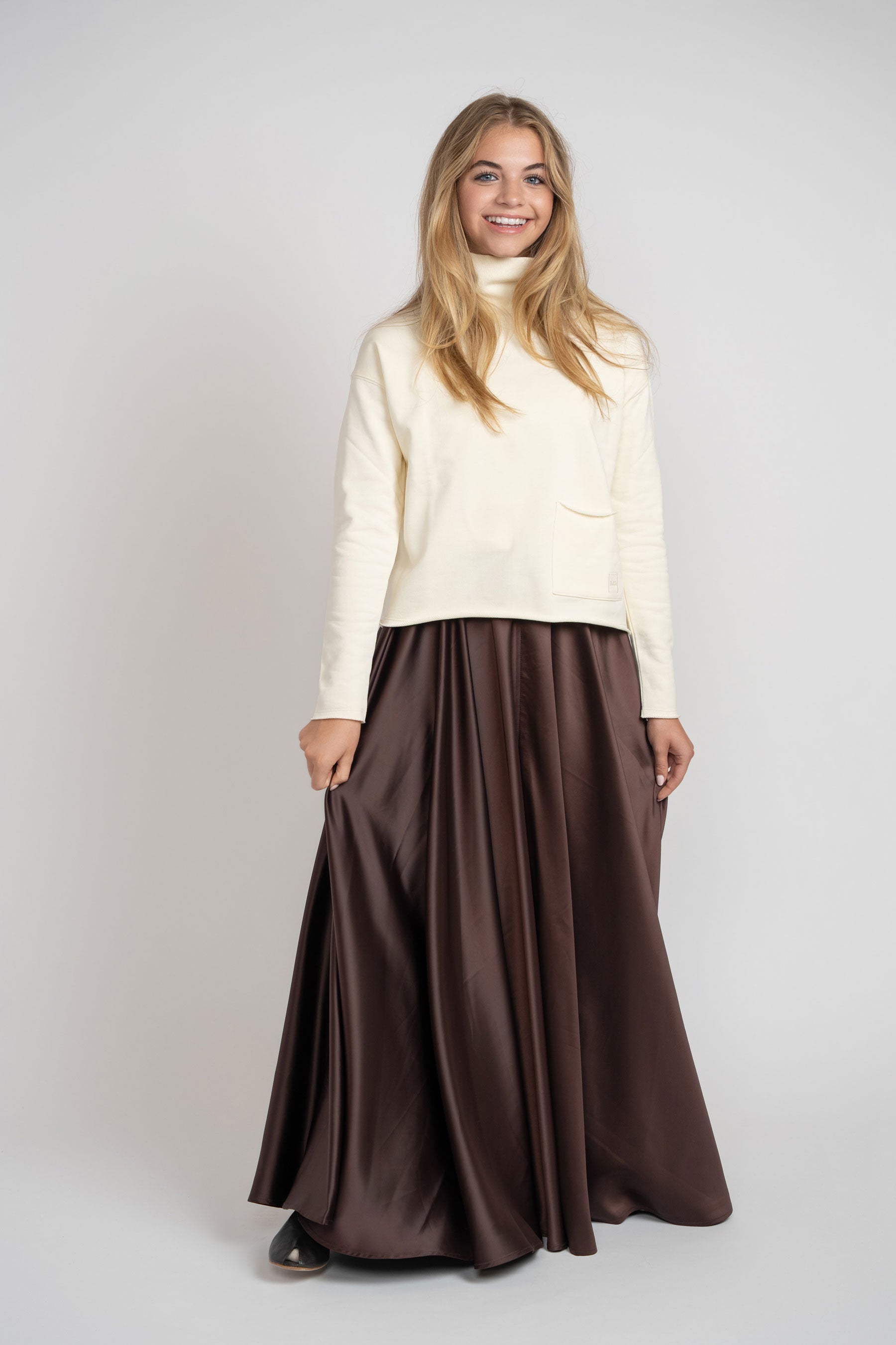 Experience understated elegance with this ivory sweater featuring a refined mock neck. Crafted for both comfort and style, its soft fabric offers a cozy fit while the minimalist design seamlessly complements any wardrobe. Perfect for layering or wearing alone, this piece adds a touch of sophistication to your everyday look.