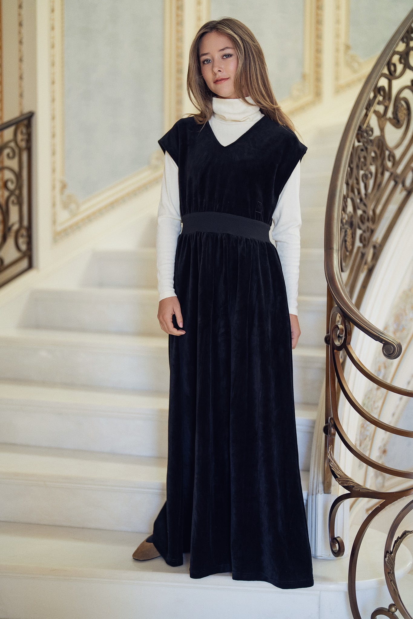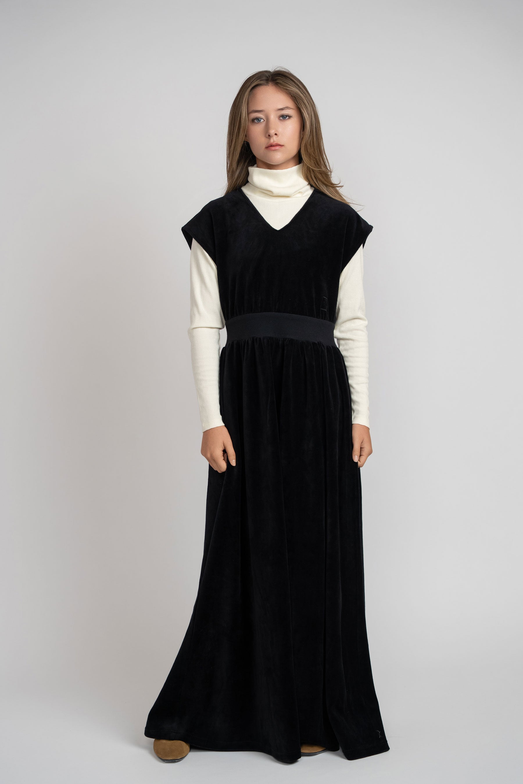 Elevate your wardrobe with the Velour V Neck Maxi in Black. Crafted from luxuriously soft velour fabric, this floor-length dress features a flattering V neckline that enhances elegance while offering comfort. Its sleek silhouette effortlessly transitions from day to night, making it an ideal choice for sophisticated occasions or relaxed evenings with a touch of refinement.