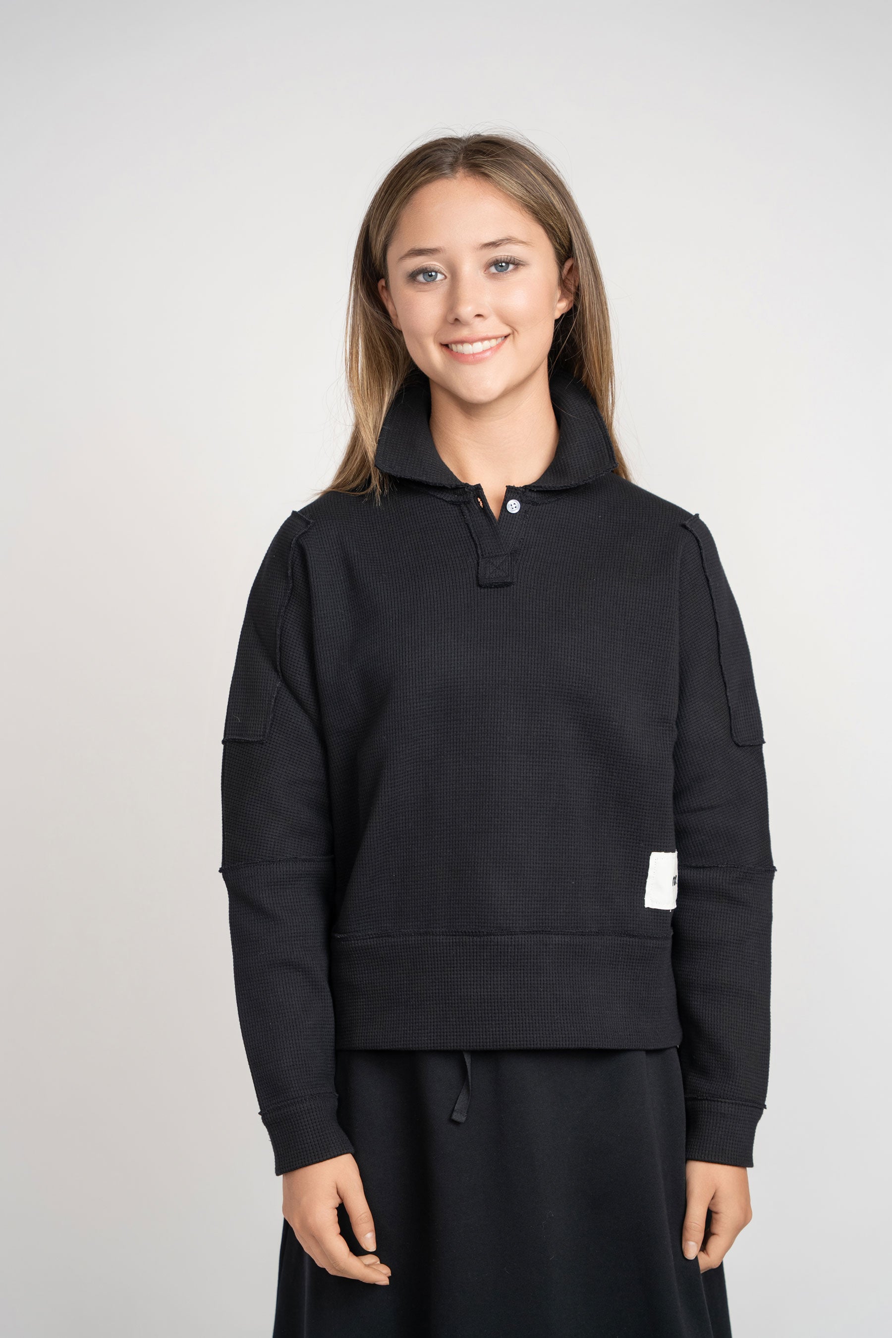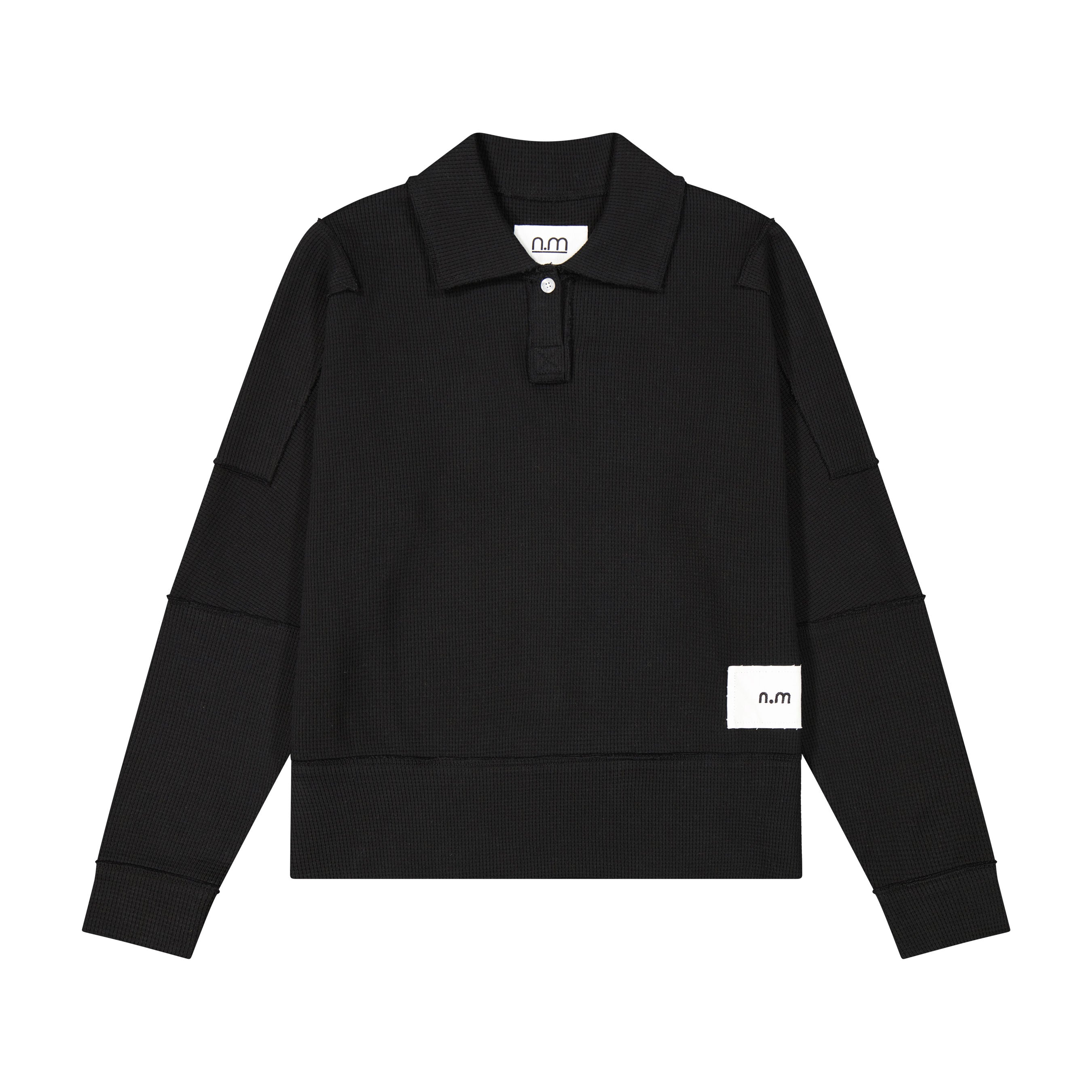 Elevate your wardrobe with the Waffle Polo Shirt in Black, crafted from textured waffle knit fabric for refined comfort. Its tailored fit and subtle detailing offer a polished look ideal for both casual and smart occasions, making it a versatile essential for the discerning dresser.